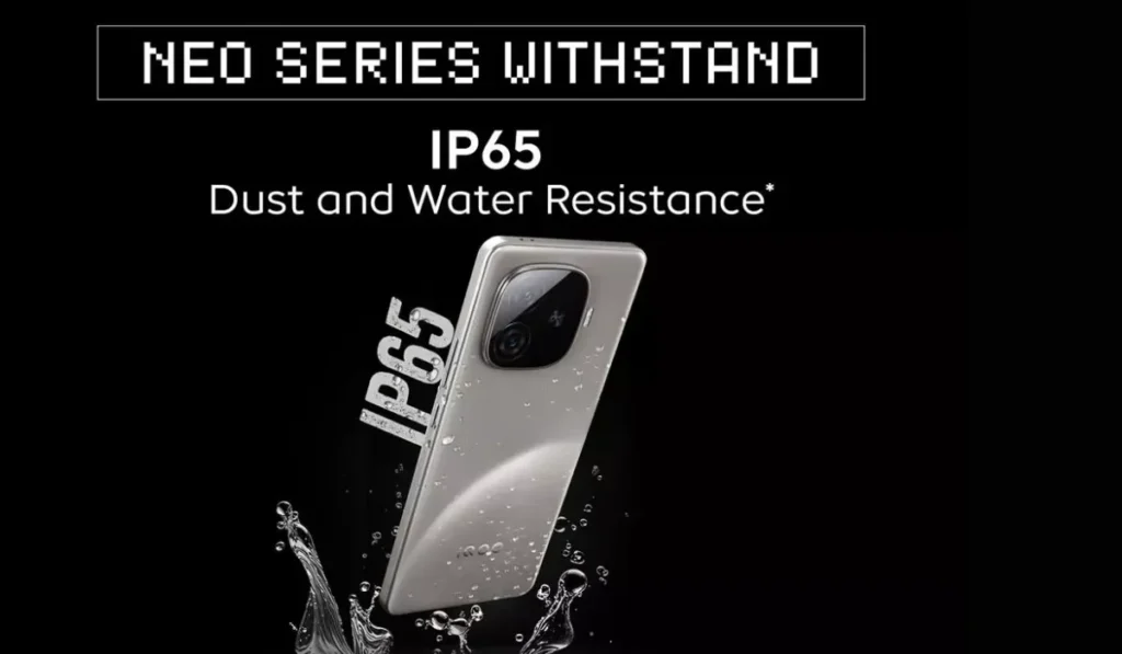 Phone carries an IP65 rating for dust and water resistance, protecting against dust ingress and low-pressure water jets from any direction.